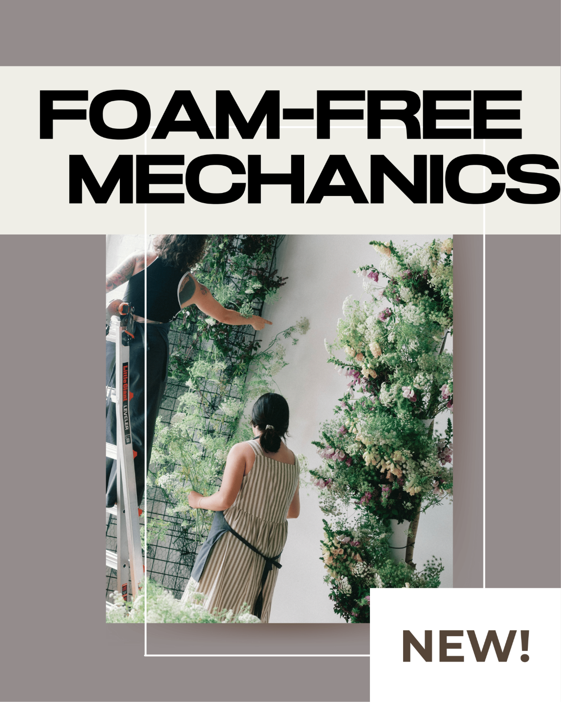 Over the years, we've created thousands of foam free designs using low waste methods and reusable solutions! And we're not the only ones innovating new ways to reduce our impact! Gain access to our Foam Free Forum channel on IG so we can share our resources and the wealth of information within our flower community!