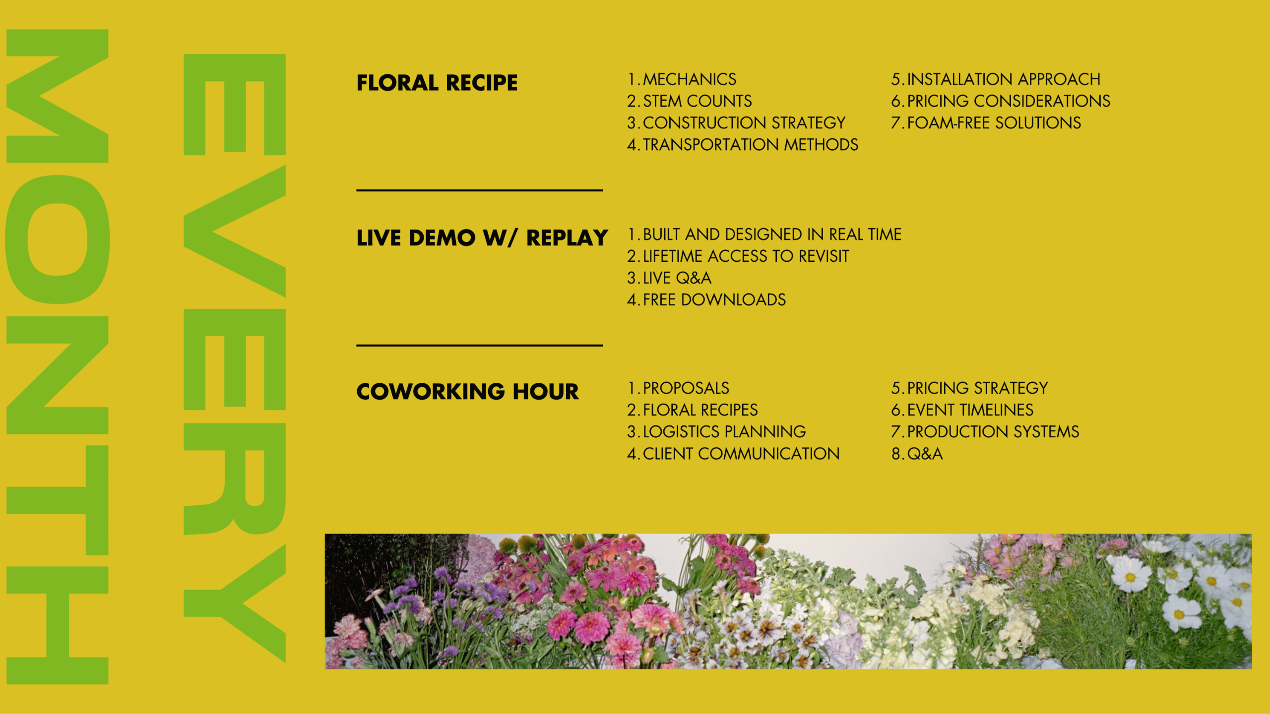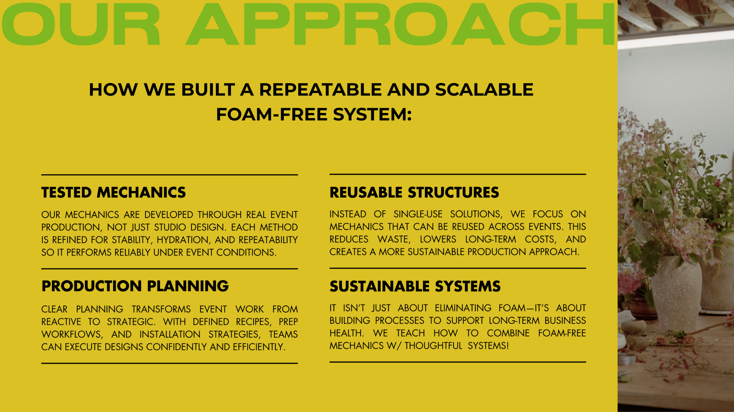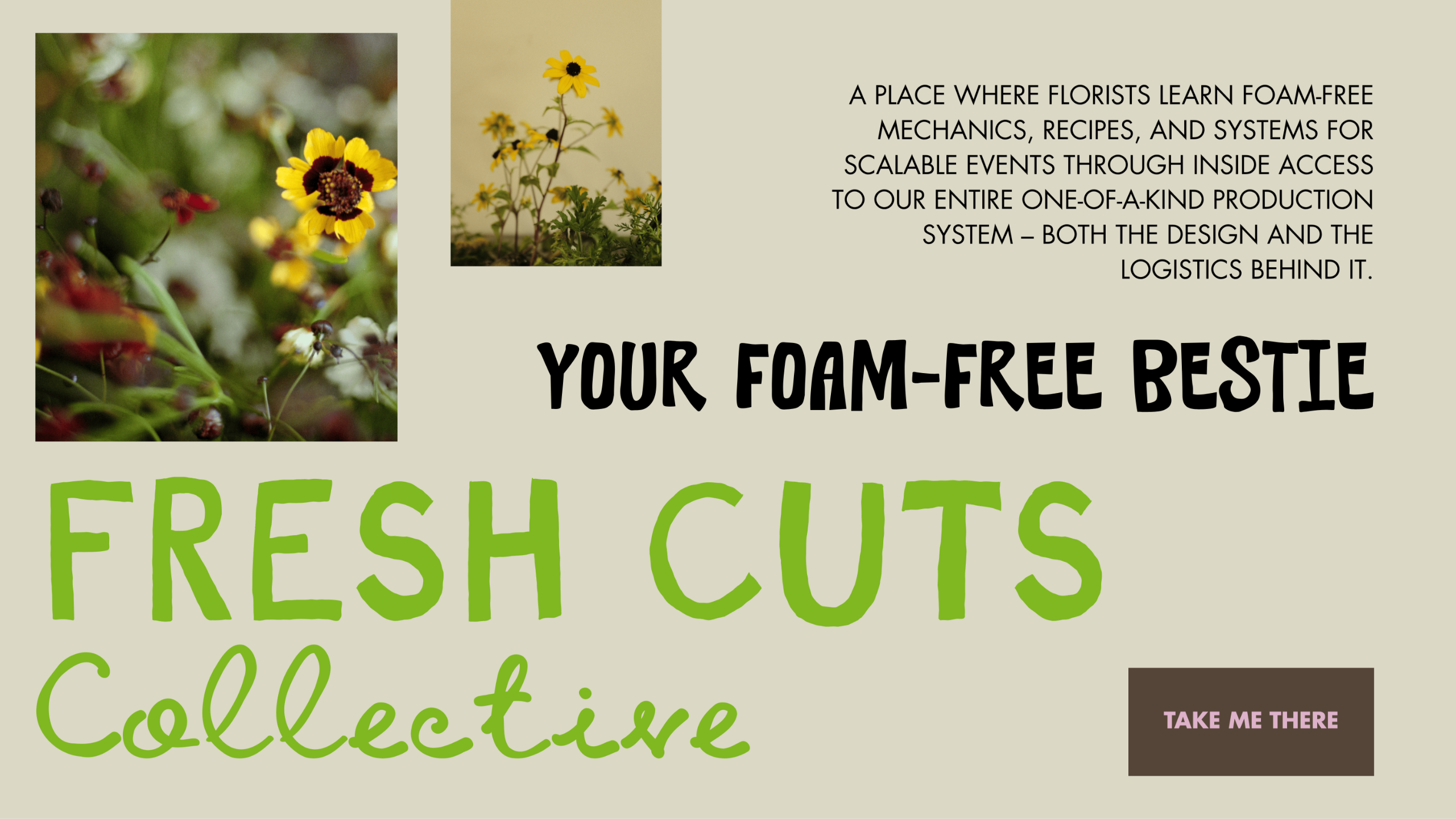 Over the years, we've created thousands of foam free designs using low waste methods and reusable solutions! And we're not the only ones innovating new ways to reduce our impact! Gain access to our Foam Free Forum channel on IG so we can share our resources and the wealth of information within our flower community!